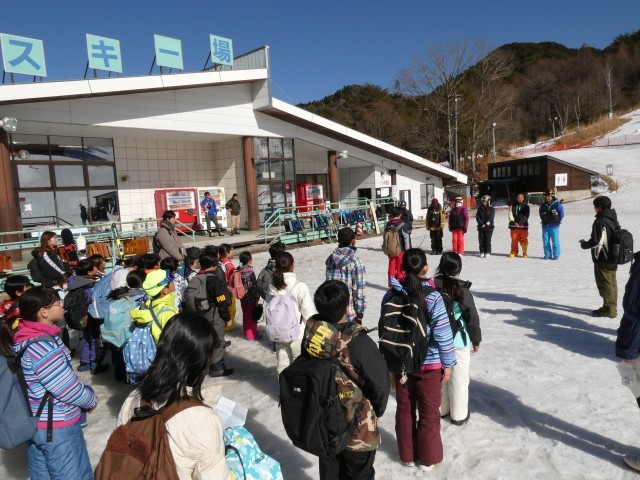 閉校式の様子です。インストラクターの皆様にお礼のあいさつをしました。振り返りでは、「腕前が上達した」「転んでもがんばった」等の言葉が聞かれました。「楽しかった人」という問いかけには、みんなが手を挙げることができました。楽しいことは、どんどん上達します。また来年、頑張りましょうね。