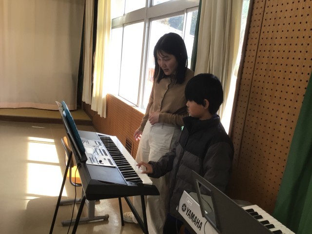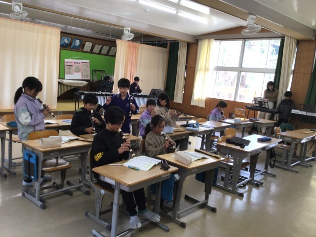 音楽科の授業の様子です。それぞれ担当した楽器ごとに「パフ」の合奏の練習をしていました。個々に練習したり、互いにアドバイスをし合ったりしながら、よりよいものにしていこうとする姿が素敵でした。