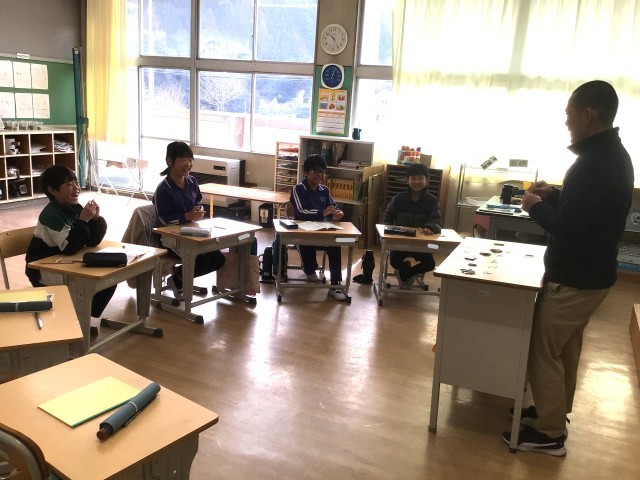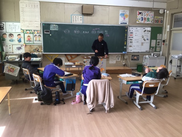国語科「人物の様子を表す言葉」の学習の様子です。「いつ」「どこで」「だれが」「何を」「どのように」「する(した)」の6つの項目を、一つの項目につき3つずつ言葉を考え、カードに書きました。4人分集めてシャッフルし、どんな文章ができたか担任が読み上げています。「そういうこともあるかも」と思える文章から支離滅裂な文章まで、いろいろな文ができました。担任が読み上げるたびに、子どもたちは大爆笑でした。