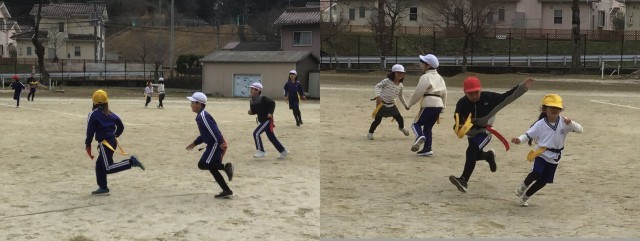 「わくわく」の時間の様子です。今日は、タグ取りをしました。陽気が暖かくなり、屋外の活動がのびのびとできるようになりました。みんなとても楽しそうでした。