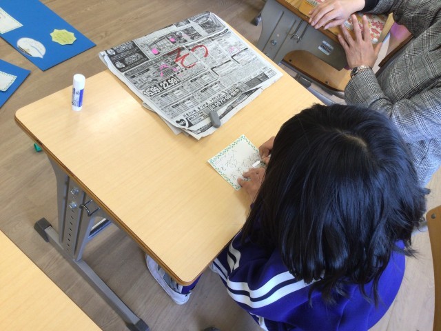 欠席者が多く、今日は3人だけだった1年生。明日から学級閉鎖となり、卒業式に参加することができなくなってしましました。6年生と最後のお別れをすることができなくなってしまったので、6年生一人一人にメッセージを書きました。