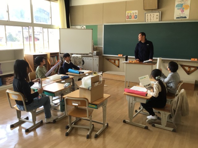写真上:最後の学級活動の様子です。新一年生を迎えるため、一年生が教室の飾りつけをしていました。