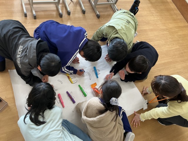 写真下:4年生の様子です。級訓が決まり、みんなで掲示物を作っています。どんな風に出来上がるのか、楽しみです。