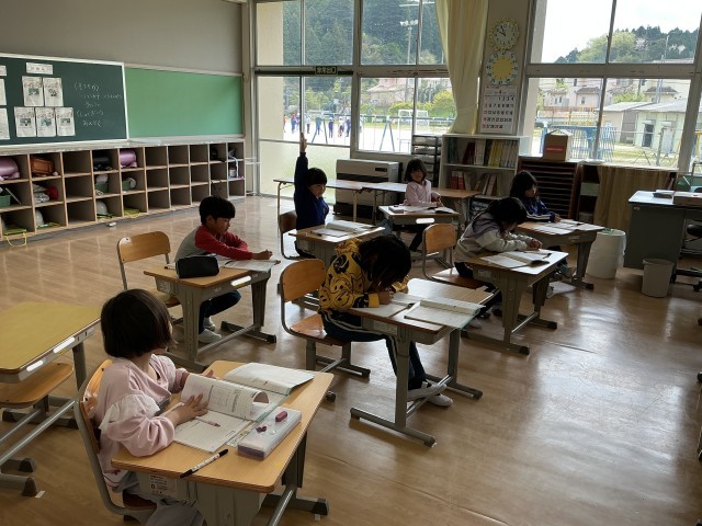 算数科「ひょうとグラフ」の学習の様子です。数えたものにはチェックをしたり線で結んだりして自分なりの工夫も見られ、事柄ごとに整理して表にまとめることが早くできるようになってきました。