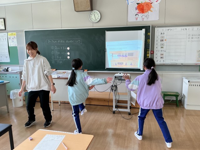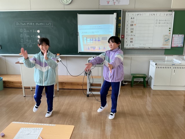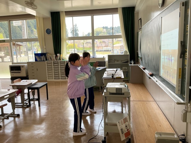 教室の前を通りかかると、楽しそうな音楽が聞こえてきました。「パプリカ」や「おいでん」などの動画を見ながら、ダンスを踊っていました。ダンスがとても上手な2人。リズムに乗って、キレキレで踊っていました。