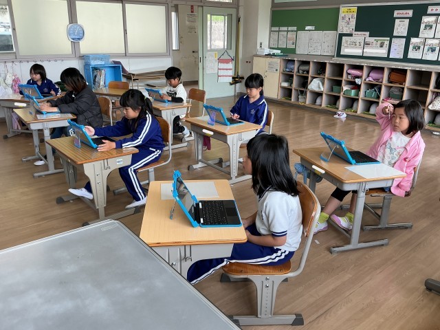 学習用タブレットが新しくなったので、初期設定を行ってます。学習用タブレットの操作にはすっかり慣れた2年生。担任の指示を聞きながら、自分で進めることができました。「見て、新しいタブレット!」と嬉しそうでした。たくさん使っていきましょうね。