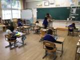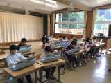 写真上:1年生 月例テストを提出し終えたところのようです。テストにも慣れてきま...