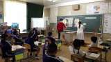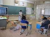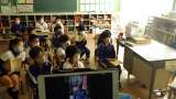 5年生が国語の授業で、椋鳩十の物語作品の魅力を4年生に伝えようと、4年生の教室...