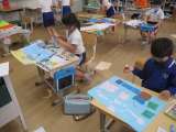 2年生が図工の授業で、「おはなしすごろく」を作っています。子どもたちは、思い思...