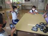 1・2年生が、体育の授業で、玉入れの玉を使って的当てを行いました。子どもたちは...