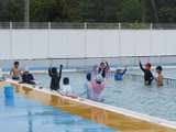 3・4年生が、体育の授業で水泳学習を行いました。水中で輪をくぐったり、水中の小...