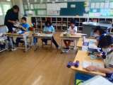 4年生が理科の授業でプロペラカーを作っています。乾電池のプラス、マイナスの向き...