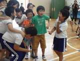 昼休みの時間に、4年生の企画・進行による全校遊びを行い、「電車じゃんけん」と「...