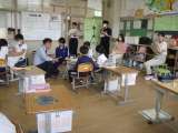 3年生が道徳の授業で、教科書「同じ小学校でも」をもとに、日本とハワイの小学校の...