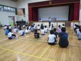 夏休みの出校日の今日、子どもたちが元気に登校しました。はじめに体育館で全校集会...