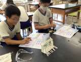 2年生が図工の授業で、色画用紙にカッターナイフでいろんな窓を作りました。子ども...