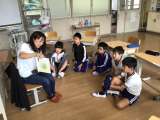 写真上:朝の読み聞かせの様子です。子守唄「ゆりかごのうた」の絵本では、ボランテ...
