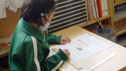 算数では、長さの学習をしています。ものさしを使って正確に長さを測ります。
