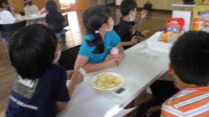 カルビーの方を講師に、おやつの摂り方について学びました。おやつで食べてもいいポテトチップスの量を各学年で予想するなど、楽しくおやつについて学習しました。