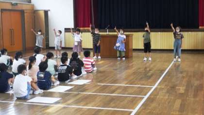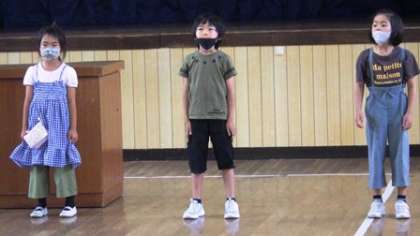 そして、一行詩集会の表彰の後、校長先生から4月からそれぞれの学級が、がんばったこと、成長したことについてお話がありました。夏休みの生活について、健康についてのお話を担当の先生から聞き、集会を閉じました。明日からの夏休みを思ってか、みんな笑顔で体育館を後にしました。