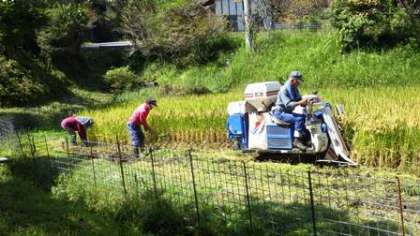 子どもたちが参加する予定だった稲刈り。緊急事態宣言下で移動が叶わず、地域コーディネーターの鈴木智さんをはじめ、子どもたちの祖父母でもあるボランティアの方々が稲刈りをしてくださいました。テレビやタブレットに映ったその様子を、子どもたちはじっと見入っていました。