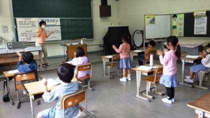 9月27日 1・2年音楽 公開日 2021/09/27 更新日 2021/09/27 各学年から 9月27日 1・2年音楽 「いるかはざんぶらこ」の曲に合わせて、「タン ウン ウン」と「ウン タン タン」に分かれて拍を打っています。「ウン タン タン」を打つ方が難しいと言いながら、積極的にチャレンジしていました。 1年 2年