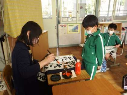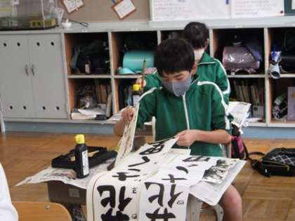 11月24日 3・4年書写 公開日 2021/11/25 更新日 2021/11/25 各学年から 11月24日 3・4年書写 書き初めの練習をしています。今日は書写ボランティアの方からポイントを教えていただきました。 3年 4年
