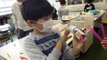 12月17日 3・4年理科 公開日 2021/12/17 更新日 2021/12/17 各学年から 12月17日 3・4年理科 光る豆電球を使った工作も、いよいよ仕上がりに近づいてきました。配線に苦労しながらも、自分のイメージどおりに作品が仕上がるように、ていねいに作業をしていました。 3年 4年