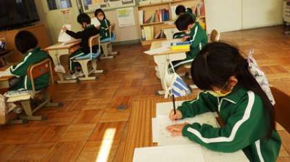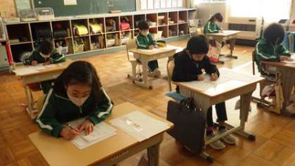 1・2年生は硬筆で、3〜6年生は毛筆で書き初めを行いました。練習のかいあって、堂々とした字をしたためていました。