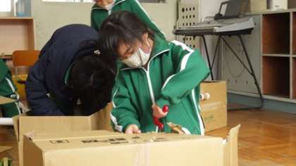 1月21日 1・2年図画工作 公開日 2022/01/21 更新日 2022/01/21 各学年から 1月21日 1・2年図画工作 段ボールを加工して、自分たちが入れる箱を作っています。かくれられるサイズにするようです。 1年 2年