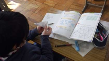 1月21日 3年算数 公開日 2022/01/21 更新日 2022/01/21 各学年から 1月21日 3年算数 三角定規を使って角度の学習をしています。三角定規の角で同じ大きさの角はあるのでしょうか。一番大きい角や小さい角はどこでしょうか。紙を使って比べていました。 3年