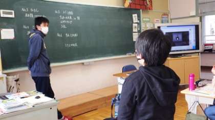 デジタル教科書を使って、いろいろな国の人の話を聞き取っています。少し難しい単語も出てきて、注意深く聞いていました。