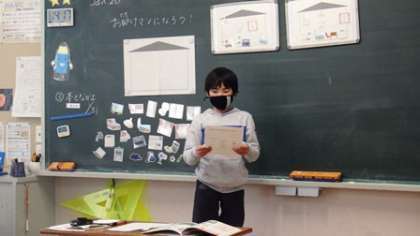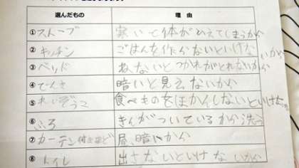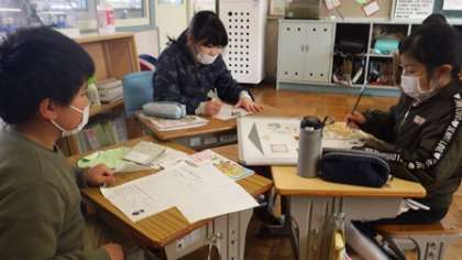 健康な生活のために、家に必要な物について考え、グループで話し合っていました。グループで話し合ったことを、みんなに伝えました。