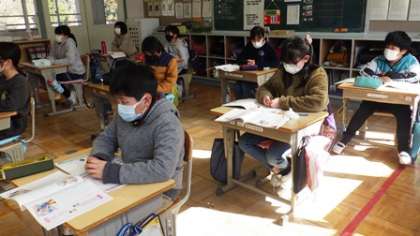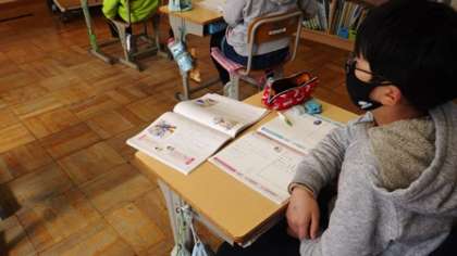 「手品師」という教材を使って、誠実な生き方について話し合いをしています。手品師の気持ちを考えて発言したり、ノートに意見を書いたりしていました。