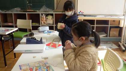 2月25日 1・2年図画工作 公開日 2022/02/25 更新日 2022/02/25 各学年から 2月25日 1・2年図画工作 「わくわくおはなしゲーム」という題材に取り組んでいます。段ボールでルーレットを作っていました。 1年 2年