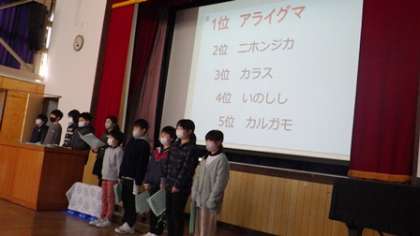 2月26日 新盛学習発表会 3・4年のテーマ 新盛の動物「SDGs大作戦!」