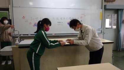 3月15日 6年お世話になった先生方に感謝する会 公開日 2022/03/15 更新日 2022/03/15 各学年から 3月15日 6年お世話になった先生方に感謝する会 卒業を控えて、6年生が「お世話になった先生方に感謝する会」を開きました。お茶を淹れ、歓談し、一人一人が書いた手紙を贈りました。短期間に様々なことに取り組む姿に感動しました。 6年