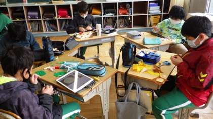 3月15日 5・6年家庭科 公開日 2022/03/15 更新日 2022/03/15 各学年から 3月15日 5・6年家庭科 フェルトや刺繍糸などを使って、お弁当を作っています。色鮮やかで本物のようにおいしそうです。 5年 6年