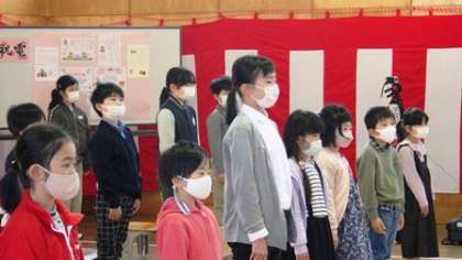 新盛自治区長様、学校アドバイザー代表様を来賓にお迎えし、令和4年度入学式・始業式を開催しました。2名の入学生は、緊張しながらも「はい」と担任の呼名に答え、立派な姿でした。2〜6年生も、「新しい学年がんばろう」という意気込みが感じられ、頼もしかったです。