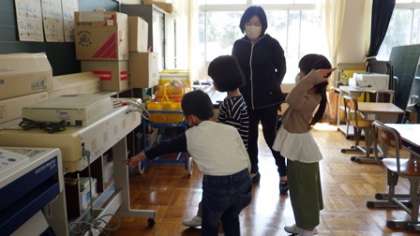 4月8日 1・2年学級活動 公開日 2022/04/08 更新日 2022/04/08 各学年から 4月8日 1・2年学級活動 学校探検をしています。2年生が校舎内のいろいろな部屋や掲示について、1年生に話していました。 1年 2年