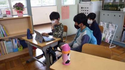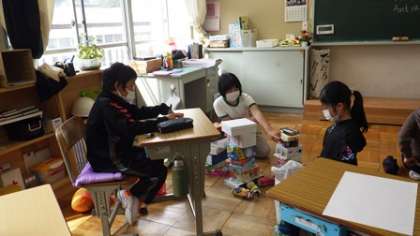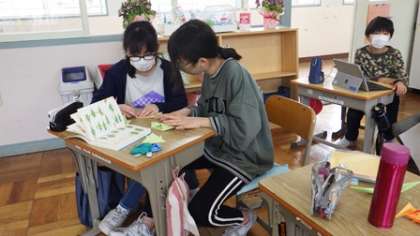 来週の新入生を迎える会の準備や教室掲示作成に全力で取り組んでいる5・6年生。これまでの経験を生かして、どんどん進めていました。