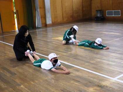 4月27日 1・2年体育 公開日 2022/04/27 更新日 2022/04/27 各学年から 4月27日 1・2年体育 友だち同士でストレッチをし合いました。体がほぐれて気持ちよさそうでした。そのあと、体全体を使って、じゃんけんをしました。 1年 2年
