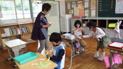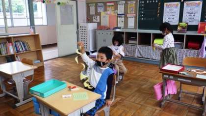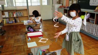 はさみの使い方の練習です。曲線をくるくると切っていくと、おもしろい形になりました。