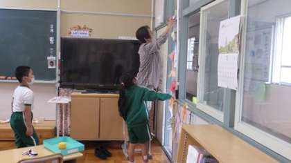 5月12日 1・2年図画工作 公開日 2022/05/12 更新日 2022/05/12 各学年から 5月12日 1・2年図画工作 おりがみを折って切ったり、回転させて切ったりしたものをつなげて飾りを作りました。一人一人、その子らしい教室飾りができました。 1年 2年