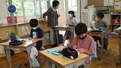 6月27日 5・6年家庭科 公開日 2022/06/27 更新日 2022/06/27 各学年から 6月27日 5・6年家庭科 5年生も、ボタン付けをして玉止めができるようになりました。手元を見て、作業に集中しています。 5年 6年