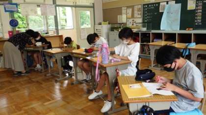 7月6日 6年算数 公開日 2022/07/06 更新日 2022/07/06 各学年から 7月6日 6年算数 点対称の図形の復習をしています。線対称と間違えそうになり、アドバイスし合っていました。 6年