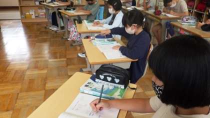 7月14日 5・6年理科 公開日 2022/07/14 更新日 2022/07/14 各学年から 7月14日 5・6年理科 実験の方法を確認して予想を立てています。窒素や酸素が周りにあるとろうそくの火はどうなるのか、それぞれノートに予想を書いていました。 5年 6年