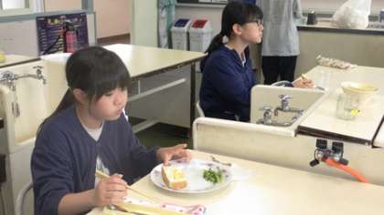 7月19日 5・6年家庭科 公開日 2022/07/19 更新日 2022/07/19 各学年から 7月19日 5・6年家庭科 今日の家庭科は「青菜炒めとスクランブルエッグトースト」の調理実習でした。なかなかの手際でおいしくできました。 5年 6年