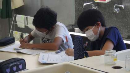 9月5日 5・6年理科 公開日 2022/09/05 更新日 2022/09/05 各学年から 9月5日 5・6年理科 物が燃えるときに起こっている「酸素」と「二酸化炭素」の変化について学習しています。実験の結果からどんなことが言えるか、まとめていました。 5年 6年
