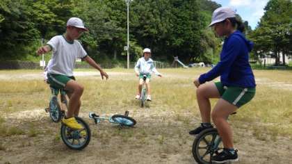 9月6日 3・4年体育 公開日 2022/09/06 更新日 2022/09/06 各学年から 9月6日 3・4年体育 第2回一輪車検定に向けて、久々の一輪車練習です。夏休みの間にすっかり大きくなった子もいて、高さ調整をしていました。 3年 4年